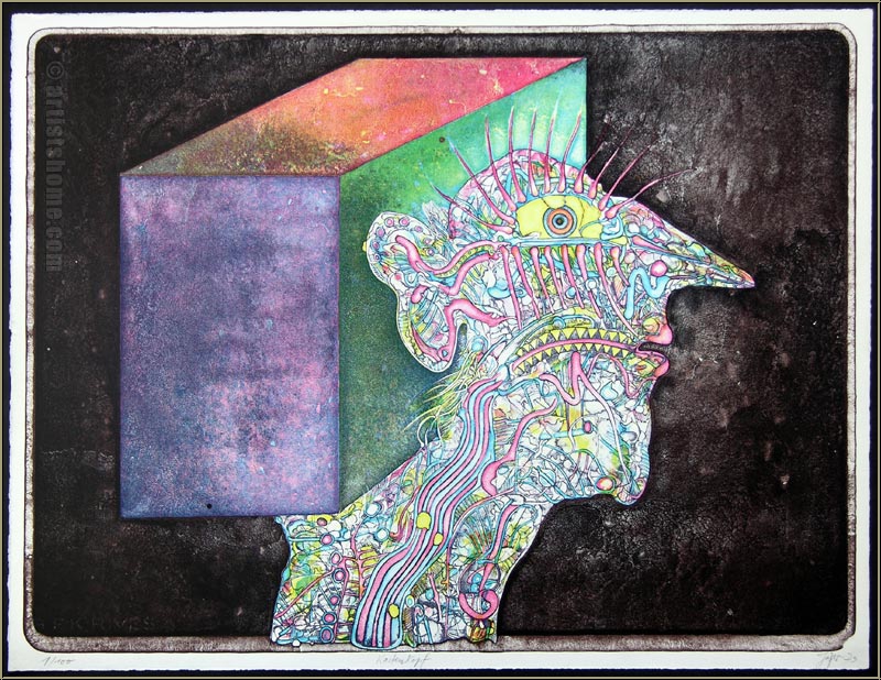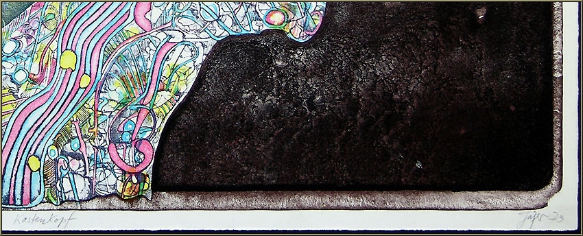 Details:"Kastenkopf" (Stubbornly Old Codger), 1973 Typical work from Jaeger's "Human zoo with all manor of creatures", who did not only cast off their clothes but also their skins - proudly presenting their insides to the viewer.