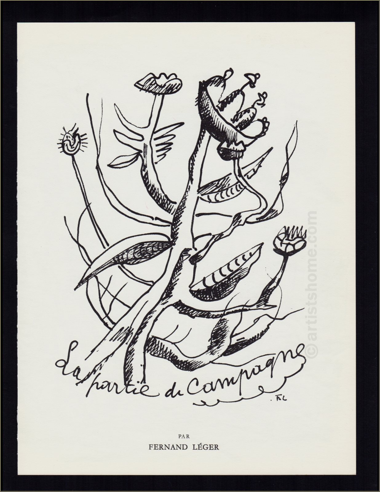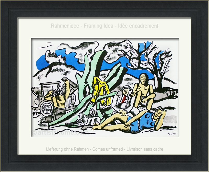| | "La Partie de Campagne" (Excursion to the countryside) - 1951 This is N O T a mass-produced reprint (e.g. photo lithograph) but the lithograph for "Verve" from 1951/1952, exactly as referenced in the authorized catalogue raisonné! | Medium / Technique: | Lithograph in colours after a gouache from 1943 | | Sizes: | 35,5 x 53,5 cm - 14 x 21 in (sheet) | | Signed: | monogrammed and dated in the stone | | Published by: | Maeght, Paris, 1952 (Maeght Editions #1401) | | Printer: | Mourlot, Paris | | Remarks: | Another two lithographs in black on the reverse. With the usual central fold (barely visible). In addition to the limited unsigned edition for the legendary art magazine "Verve", 75 impressions on wove paper were printed and signed by Fernand Léger | Documentation/ Reference: | Saphire, Lawrence u. Mourlot, Fernand (preface), Fernand Leger. The Complete Graphic Work. Blue Moon Press, New York, 1978, pages 288 and 290, No. E 14 This print is being delivered with a proof of identity (without selling price) in case this print is intended as a present. | | Condition: | Read more An excellent impression from the archives. Scarce, in this condition! Frame not included in delivery. | Customer Reviews: This item has not been rated, yet. Customer ratings may only be submitted by customers who have bought this item and are logged in. Your name will, of course, be displayed anonymized (e.g., "Tom H., United Kingdom").  *Applies to deliveries to Germany paid via PayPal. In case of payment by bank transfer, delivery will take 1-3 days longer from the day of your banker�s order. Delivery times for other countries and information for estimating the day of delivery can be found here |