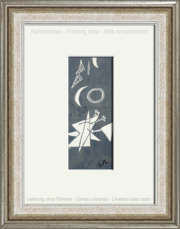 Size / Paper: 38 x 28 cm / 15" x 11" (sheet) - 22,5 x 9,5 cm / 8.9" x 3.7" (image), printed on velin paper with text on the reverse, as published in 1959 in DLM "Braque"