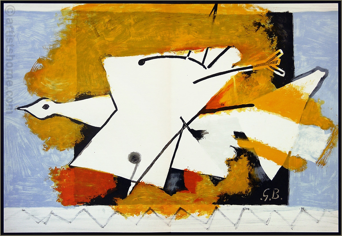 "The yellow bird" (which is, strictly speaking, a white bird in front of a yellow background) is considered to be one of the rarer large-format and colourful graphical works of Braque.
