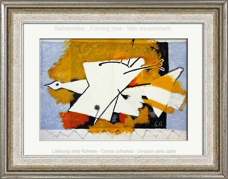 Nevertheless, the work is not an art print at all. Vallier or Maeght, respectively, write in the catalogue raisonné for these works: "He [Braque] was involved in the production of these prints, he supervised and guided the work of the engraver or lithographer, he himself revised several pieces, corrected the prints and then gave his final approval by signing each exemplar." This unsigned exemplar is also an authentic print, since it was produced with the same stones and in the same year (1959) as the signed prints. Just to clarify: the signed prints are also not original lithographs, even though this is often claimed and they are offered for 4-digit sums.