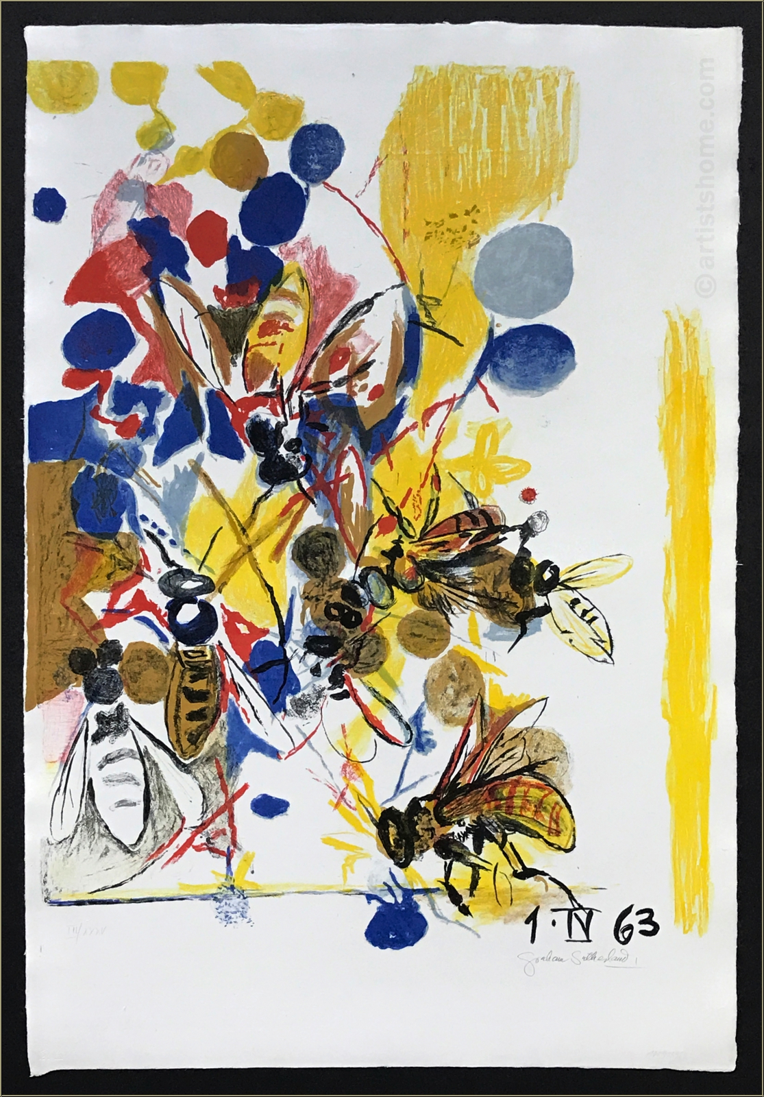 Signed original lithograph on the theme of insects and particularly honey bees, one of 35 numbered impressions on Japon nacré paper