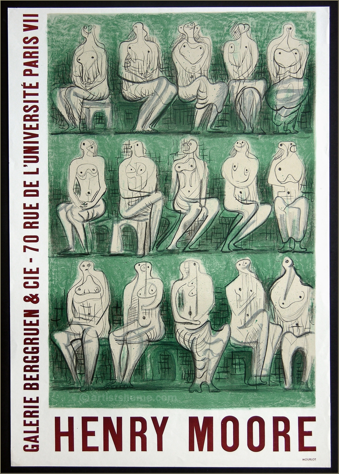Henry Moore: Berggruen & Cie, 1957, Seated Figures, Original Lithograph Mourlot, Vintage exhibition posters