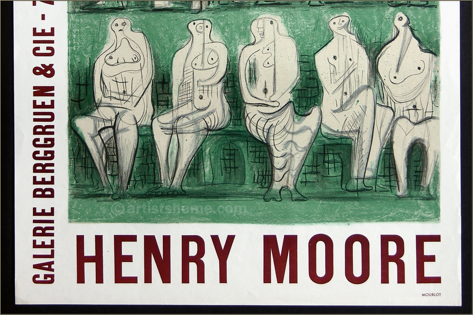 Original poster by Henry Moore for his 1957 exhibition at the Berggruen Gallery, printed by Mourlot.