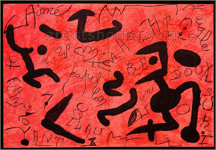 Large original lithograph in colours by Spanish artist Joan Miro for the portfolio "Hommage à Aimé et Marguerite Maeght", published in 1982 as a retrospect on the occasion of Aimé Maeghts death. 24 of "their" artists contributed with original graphic works.