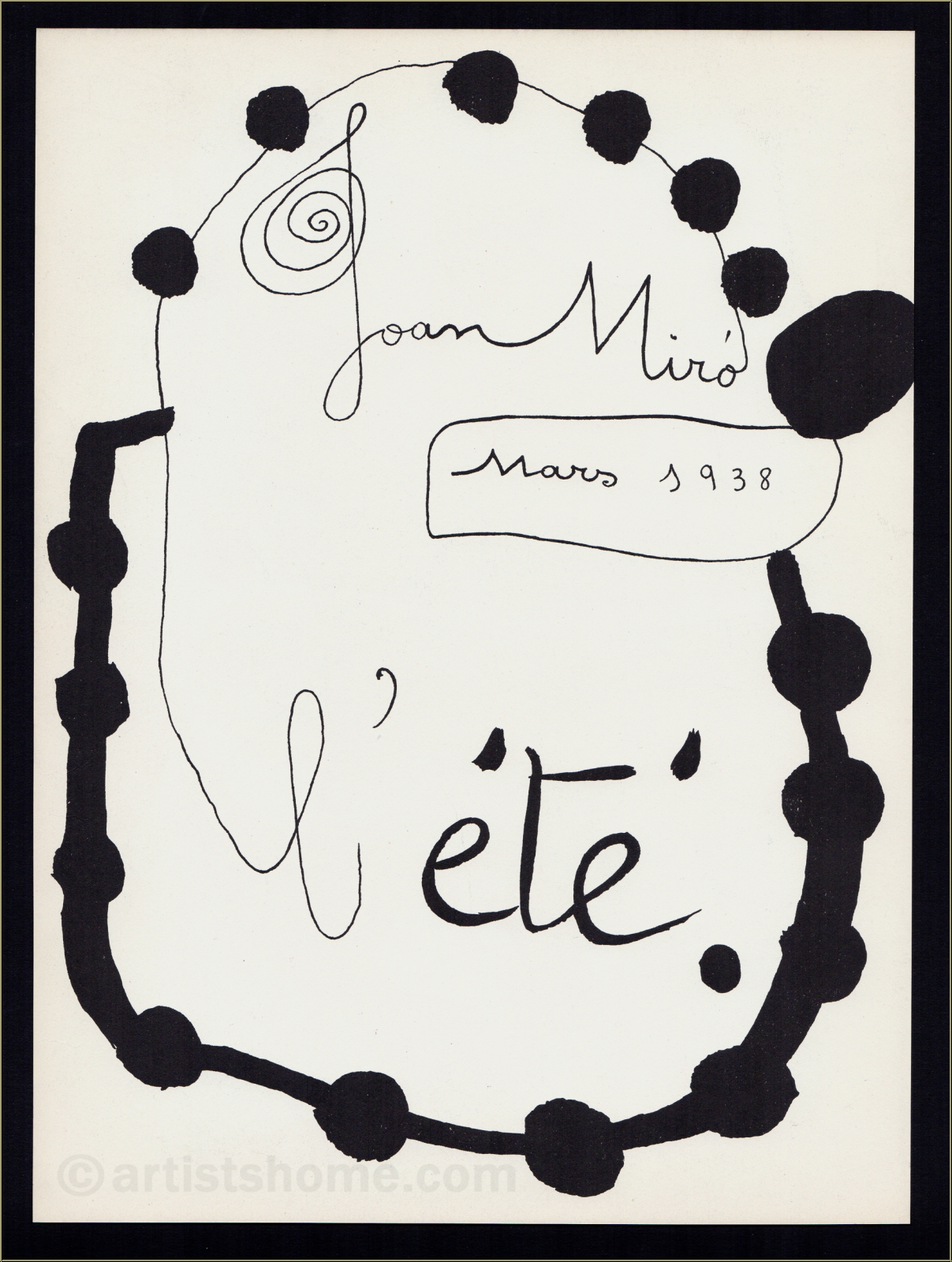Joan Miro: Summer 'L'été', 1938, Original Lithograph, imprint on the reverse: Joan Miro - Mars 1938 - l'été