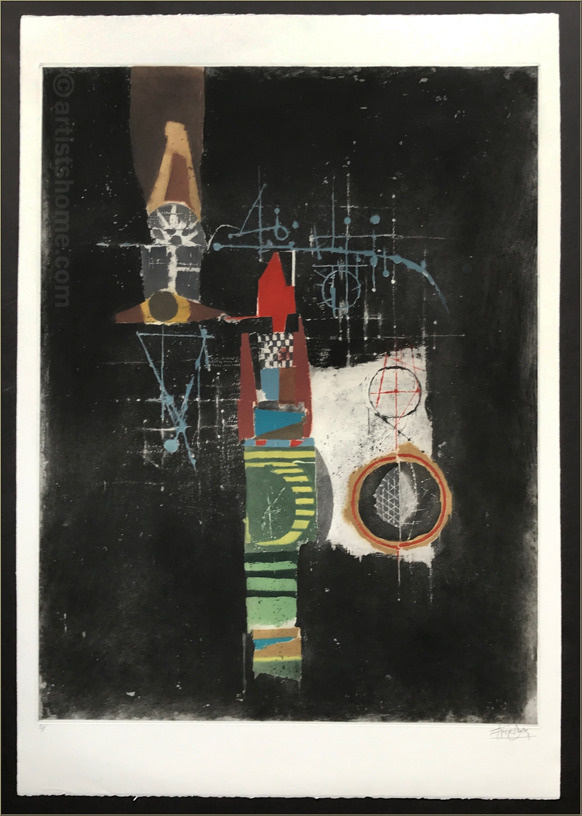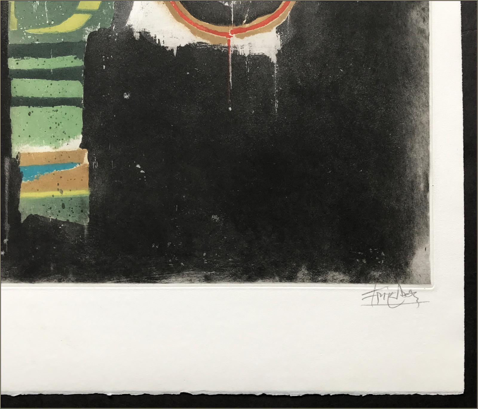 | | "Fugue miroir" (Mirror Fugue), 1978 | Technique: | Original etching with aquatint in colors | | signed / Edition: | Signed by Friedlaender in pencil lower right, numbered 1/95 lower left | | Year: | 1978 | | Sizes: | 915 x 635 mm (paper) / 36 x 25 inches | | Paper: | Printed on strong, watermarked Arches paper | | Published by: | manus presse Stuttgart, Germany | Documentation/ Reference: | Schmücking, Rolf. Friedlaender. Radierungen III. Werkverzeichnis der Radierungen 1977-1981. Galerie Schmücking, Braunschweig, 1982, page 33, no. 618 This print is being delivered with an abstract from the a.m. catalogue raisonné for your files. | | Condition: | Read more In excellent, almost untouched condition. | Customer Reviews: This item has not been rated, yet. Customer ratings may only be submitted by customers who have bought this item and are logged in. Your name will, of course, be displayed anonymized (e.g., "Tom H., United Kingdom").  *Applies to deliveries to Germany paid via PayPal. In case of payment by bank transfer, delivery will take 1-3 days longer from the day of your banker�s order. Delivery times for other countries and information for estimating the day of delivery can be found here |