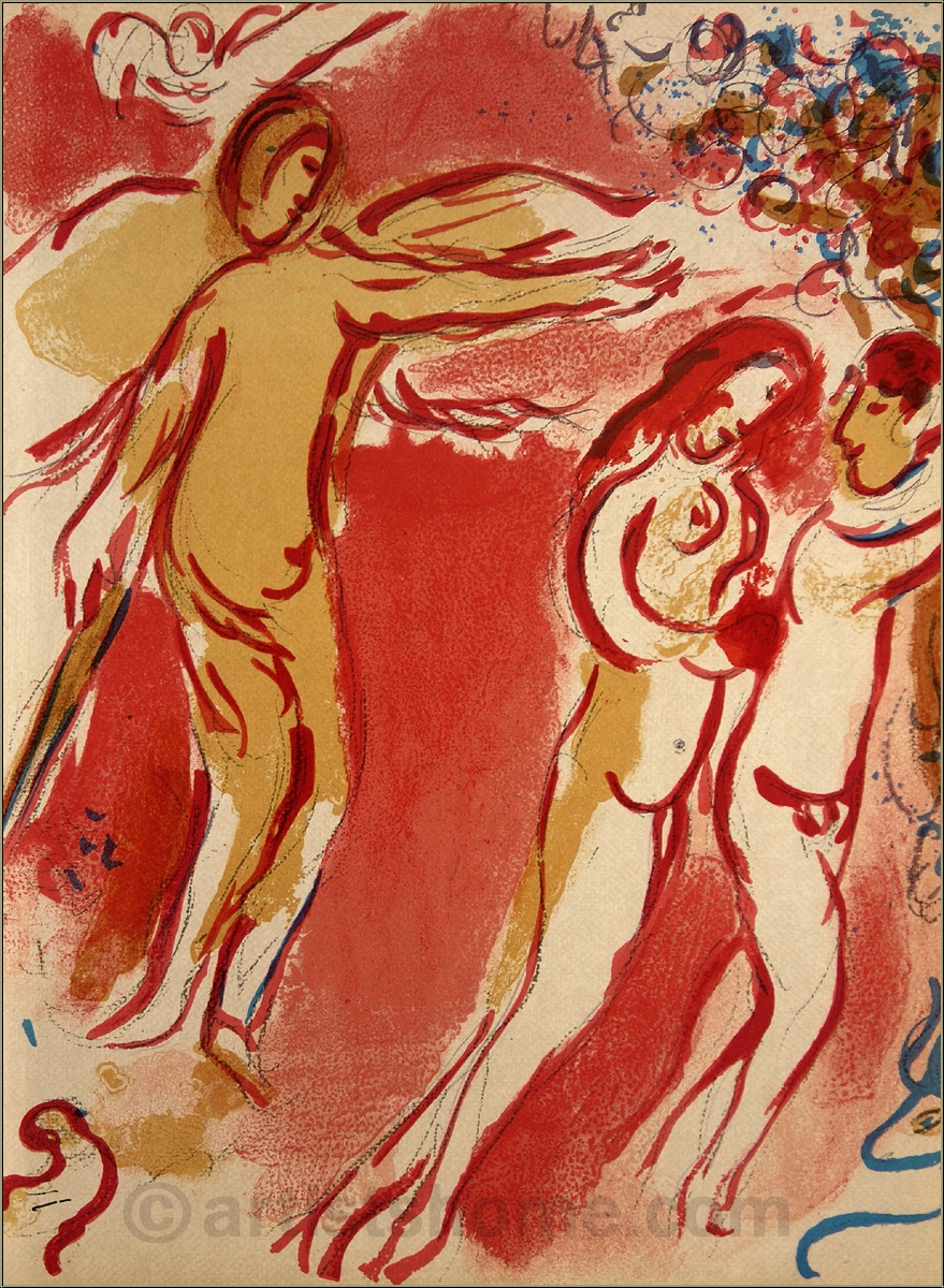 Original colour lithograph by Marc Chagall for his renowned book "Illustrations for The Bible".