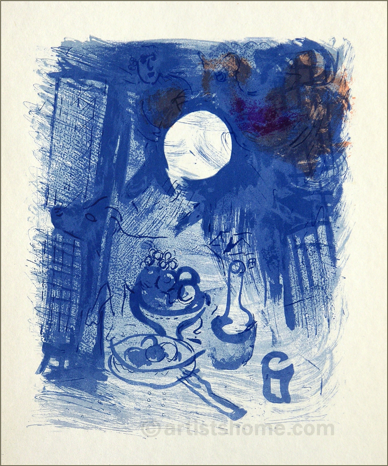 Marc Chagall: Blue Still Life with Fruits, 1957, Original Lithograph
