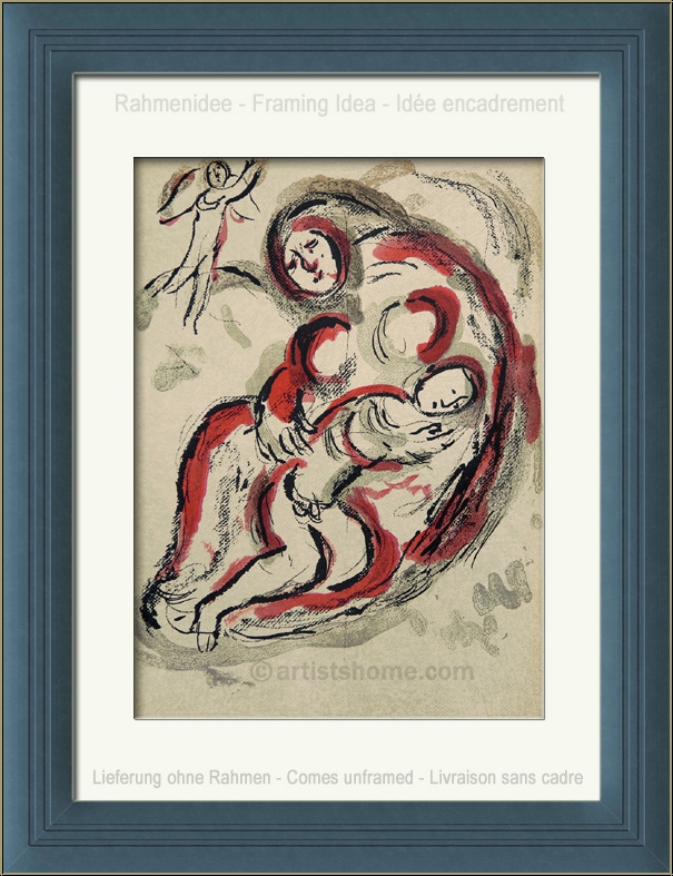 This is  N O T  a mass-produced reprint (photo or grano lithograph from a so-called "Limited edition") but the original lithograph from Chagalls Bible II, exactly as referenced in Mourlot's catalogue raisonné.