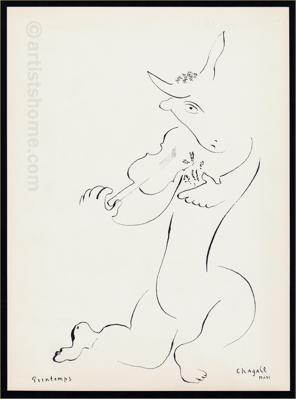 Marc Chagall: 'Spring' Violin playing billy goat with girl sitting on its shoulder, wedding anniversary gift