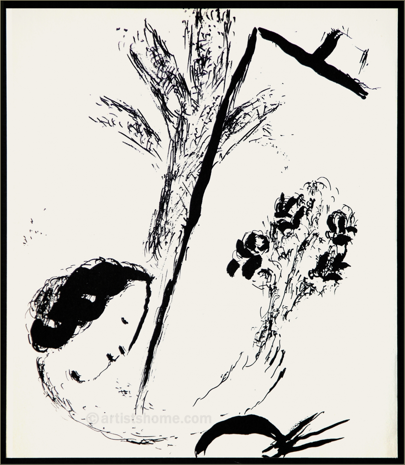 | | "Le bouquet à la main" (Bouquet of flowers in his hand) This is one of two monocromatic works printed in black for Chagall's famous monograph on his life as a painter. The fact that this is a self-portrait of the artist is evident from the color palette with brushes on the bottom of the image. | Technique: | Original lithograph (Mourlot no. 207) This is N O T a mass-produced reprint (photomechanical reproduction) but the original lithograph from the first edition of the monograph "Chagall" by J. Lassaigne, exactly as referenced in Mourlots catalogue raisonné. Note: there are lots of reproduced plates from a later piracy reprint edition that are no original lithographs! | | Year: | 1957 | | Sizes: | 23 x 20 cm / 9" x 7.9" (sheet) | | Edition | Paper: | One of 6000 unsigned copies from the book edition on smooth velin paper. In addition, 90 pencil-signed and numbered copies on Arches wove paper with wide margins were published. | | Published by: | Maeght Editions, Paris | | Printed by: | Mourlot, Paris | | Documentation / References: | Mourlot, Fernand. Chagall Lithograph [II] 1957-1962, André Sauret, Monte-Carlo 1963, pages 20-29, no. 207 Your print is being delivered with an abstract from the a.m. catalogue raisonné. In addition, you'll receive a proof of identity (without selling price) in case this print is intended as a gift. | | Condition: | Read more A very good copy from the archives. Rare, in this condition! Frame not included in delivery. | Customer Reviews: This item has not been rated, yet. Customer ratings may only be submitted by customers who have bought this item and are logged in. Your name will, of course, be displayed anonymized (e.g., "Tom H., United Kingdom").  *Applies to deliveries to Germany paid via PayPal. In case of payment by bank transfer, delivery will take 1-3 days longer from the day of your banker�s order. Delivery times for other countries and information for estimating the day of delivery can be found here |