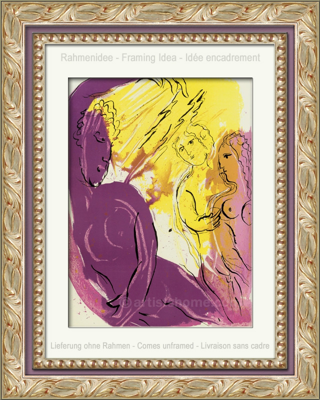 This is  N O T  a mass-produced reprint (offset or grano lithograph from a later "Limited edition") but the original lithograph for Chagalls "Bible I", exactly as referenced in Mourlots catalogue raisonné.