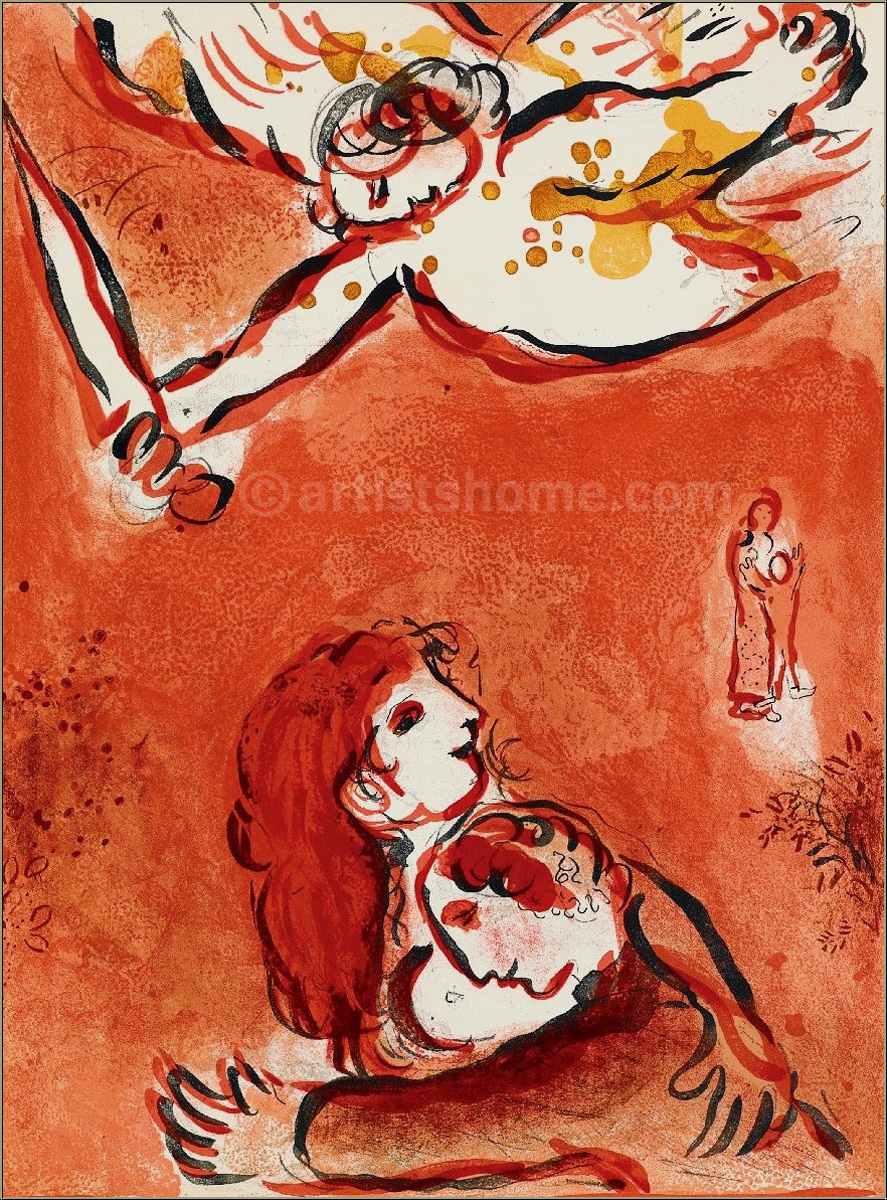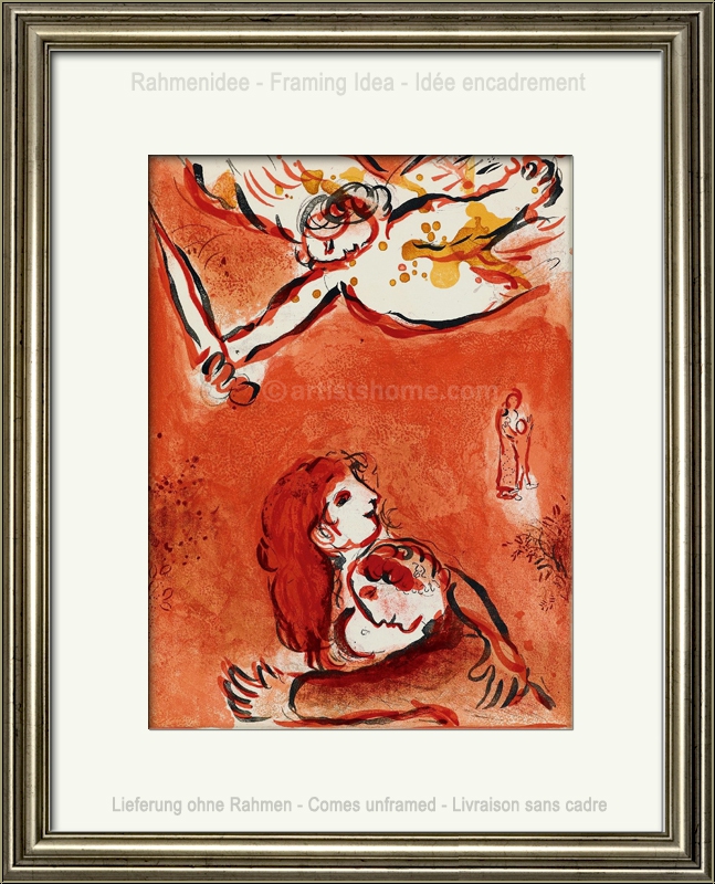 In 1956, the French art critic and publisher Tériade brought out a special issue of the legendary art magazine Verve, which was exclusively devoted to one of Marc Chagalls major themes: The Bible. For this outstanding issue, Chagall composed 18 full-page colour lithographs and 12 in black and white. For his "Bible I" Marc Chagall focused on characters from the Old Testament such as the Founding Fathers, the Kings, the Prophets and Angels. Four years later, in 1960, the follow-up issue "Illustrations for The Bible" was published, with another 24 gorgeous color lithographs. Since then, vast numbers of reproductions were put in circulation which are anything but original(!) lithographs.