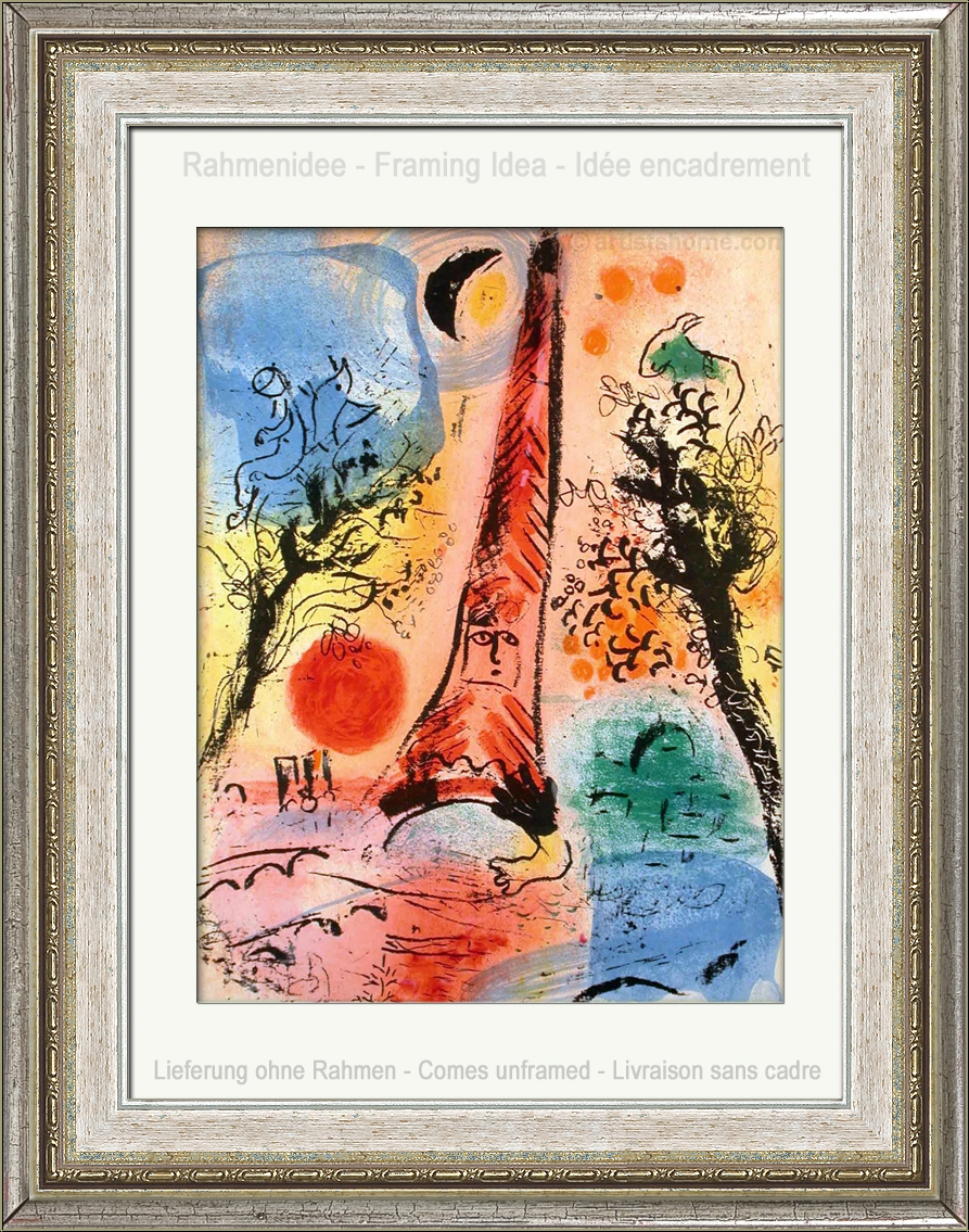 "For my art, I needed Paris as necessary as a tree does need water", Chagall used to say when he was asked about the reasons for the departure from his native Russia. He seemed to suffocate by the silence, sadness and lack of color, which his hometown and family environment must have radiated at that time. Paris became Chagall's second home, it represented for him the longed-for freedom and versatility. Not surprising, then, that Chagall's Paris pictures always included a firework of colors.