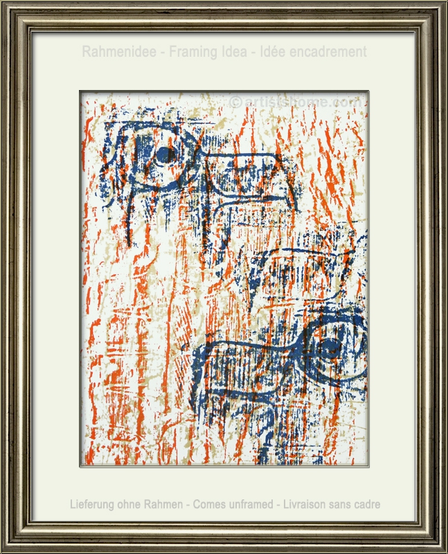| | | Technique: | Original lithograph printed in blue, orange and ochre (Spies/Leppien 88; D) | | Year: | 1962 | | Sizes: | 32,5 x 24,5 cm / 12.8" x 9.7" (sheet) | | Edition | Paper: | One of the unsigned impressions for the book edition on velin paper | | Published by: | Art de France, Pierre Berès, Paris | | Printed by: | Mourlot, Paris | | Documentation / References: | Max Ernst. Graphische Welten. Die Sammlung Schneppenheim. DuMont, Köln, 2003, page 214 Your print is being delivered with an abstract from the a.m. catalogues raisonné for your files. In addition, you'll receive a proof of identity (without selling price in case this print is intended as a present). | | Condition: | Read more A well preserved, clean copy from the archives. Frame not included in delivery. | Customer Reviews: This item has not been rated, yet. Customer ratings may only be submitted by customers who have bought this item and are logged in. Your name will, of course, be displayed anonymized (e.g., "Tom H., United Kingdom").  *Applies to deliveries to Germany paid via PayPal. In case of payment by bank transfer, delivery will take 1-3 days longer from the day of your banker�s order. Delivery times for other countries and information for estimating the day of delivery can be found here |