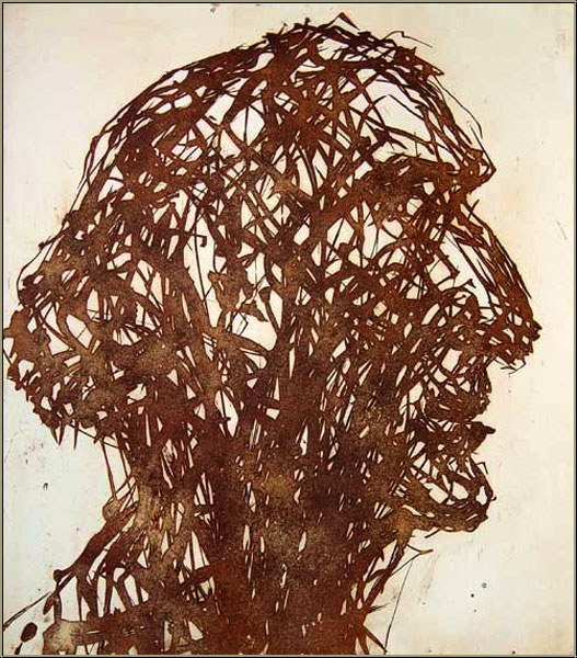 Details:"Portrait Marc Chagall" - Profile in raw sienna Typical, large etching by German artist Max Uhlig. Printed on strong wove paper, signed in pencil.