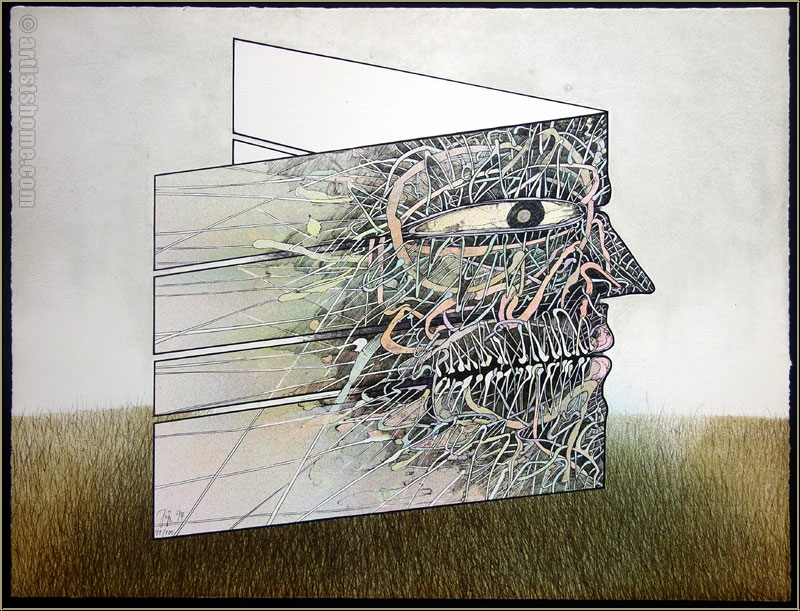Lithograph in colours on wove paper, one of the legendary "X-ray graphics" by the German artist