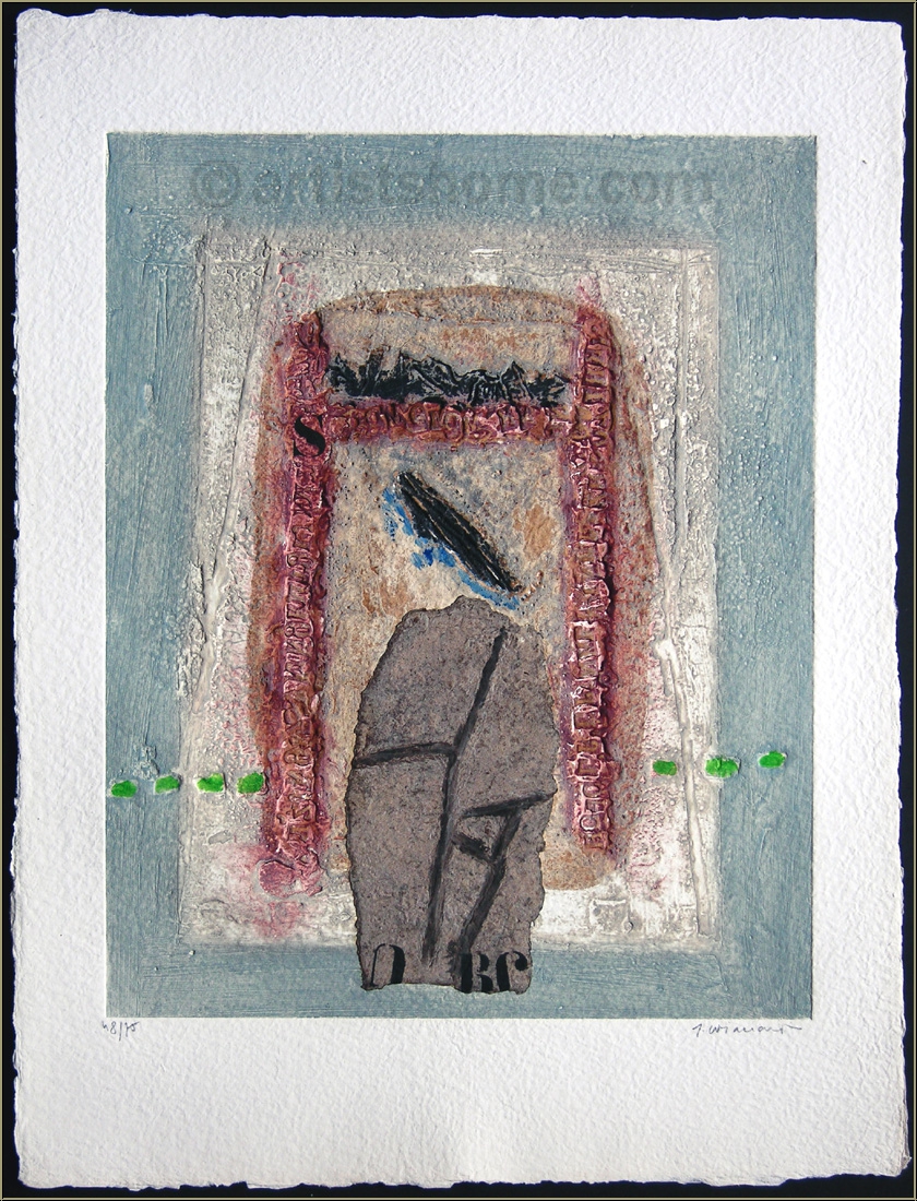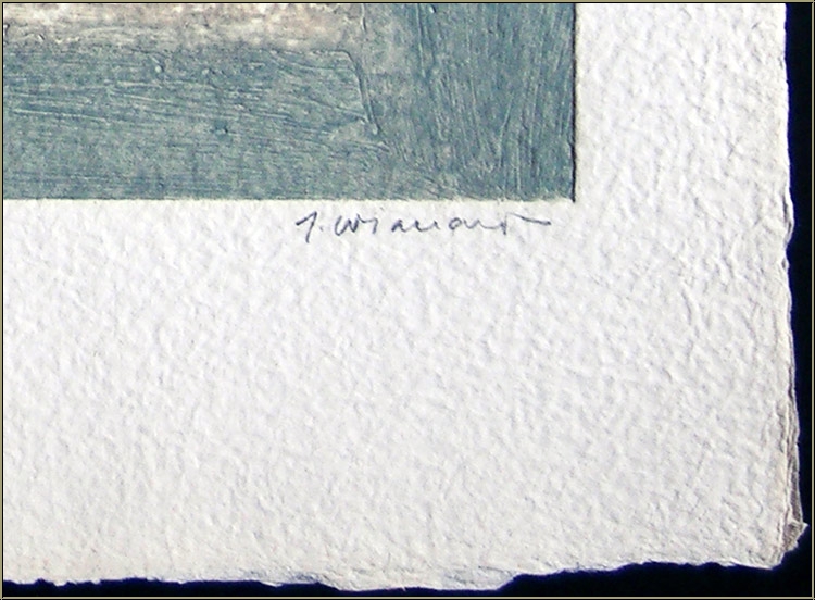 | | "Mouvement Lineaire Vert" - 1980 Large, elaborate carborundum etching in 9 colors with collage. Signed and numbered. | Edition: | 75 numbered copies + 10 e.a.; plate destroyed. | | Sizes: | 65 x 50 cm (sheet), 49,5 x 38,5 cm (illustration) | | Paper: | Papier à la forme du Moulin de Larroque Colombe (handmade heavy paper, produced in an ancient mill from the XVth century in the southwest of France). | | Editor: | B.R./Garbis, Paris | | Printer: | Atelier Barbara, Nice | Documentation/ References: | Bergström, Gunnar et al. James Coignard. Catalogue raisonné de l'Oeuvre gravé III (1980-1986), Editions Sonet, Lidingö 1986, p. 22, N° 464 This print is being delivered with an abstract from the a.m. catalogue raisonné | | | Customer Reviews: This item has not been rated, yet. Customer ratings may only be submitted by customers who have bought this item and are logged in. Your name will, of course, be displayed anonymized (e.g., "Tom H., United Kingdom").  *Applies to deliveries to Germany paid via PayPal. In case of payment by bank transfer, delivery will take 1-3 days longer from the day of your banker�s order. Delivery times for other countries and information for estimating the day of delivery can be found here |