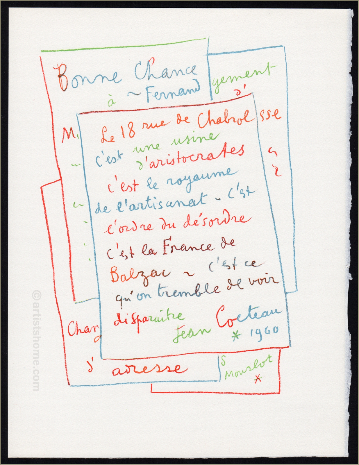 Jean Cocteau: Original Lithograph "Manuscript" 1972 Arches, Mourlot
