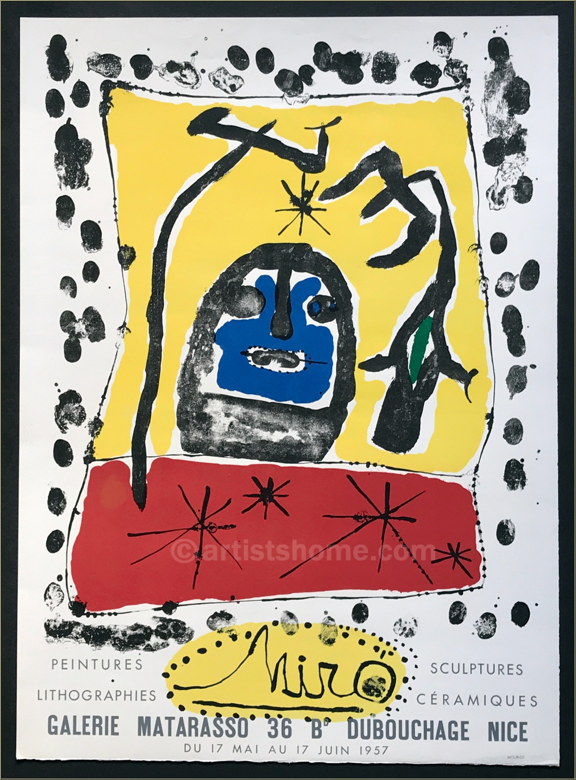 One of the very first original posters created by Miro for an exhibition in Nice, printed on watermarked Arches paper by Mourlot.