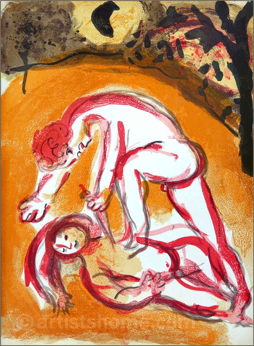 Marc Chagall: Cain and Abel, Original Lithograph Verve Bible by Mourlot, 1960 - fraternal hatred | Prints