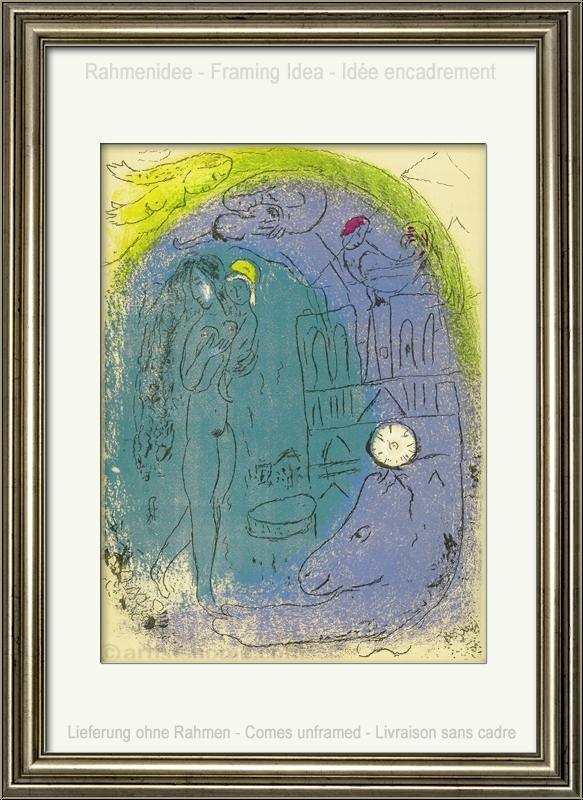 One of 6000 impressions for the original Verve edition on smooth velin paper. In addition, 75 impressions were printed on Arches wove paper with wide margins and pencil-signed and numbered by Chagall.