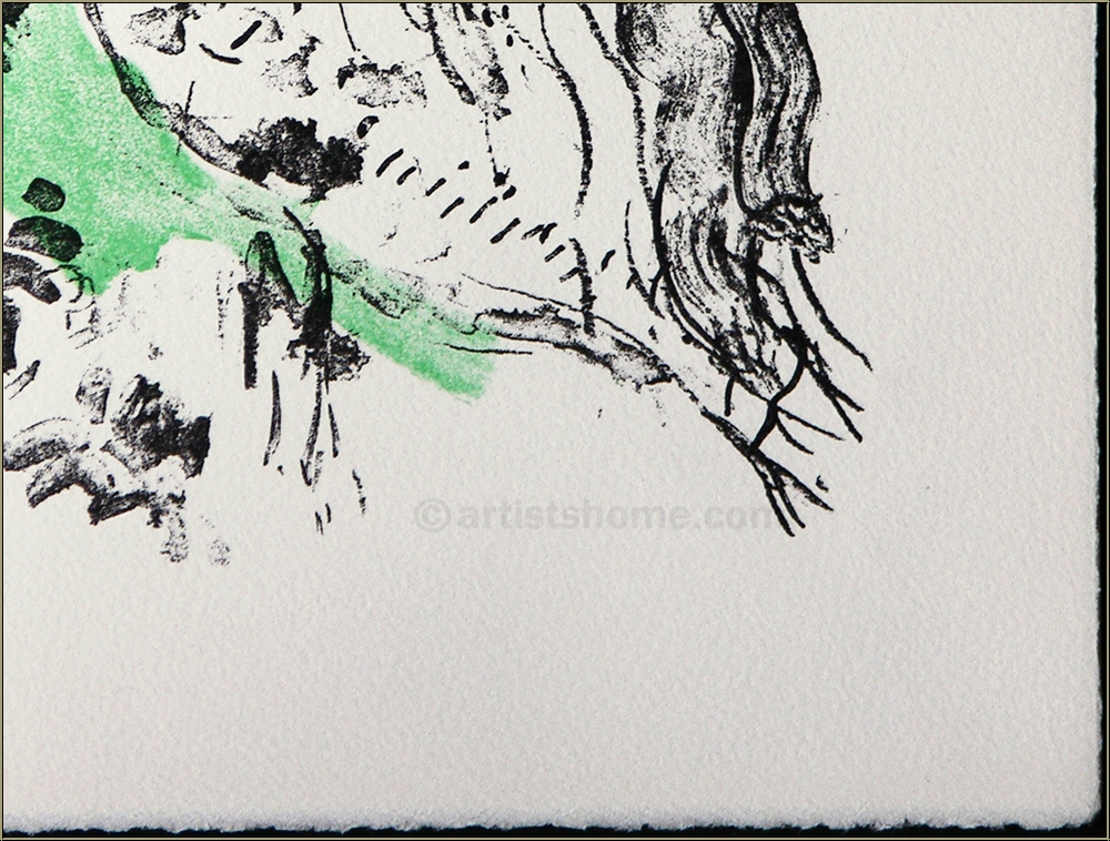 Details:Frontispiece for "Élégie des alizés" (Elegy of the Trade Winds) A couple that seems to be talking to an ibis passing through (often called a "holy ibis") is shown on this extraordinarily rare print by Chagall. According to the catalogue raisonné, the four lithographs, created by the artist about this subject in 1969, are his only works featuring the exotic animal. The captivating original colour lithograph was printed on laid paper by Arches as the frontispiece for the volume by L.S. Senghor, mentioned above.