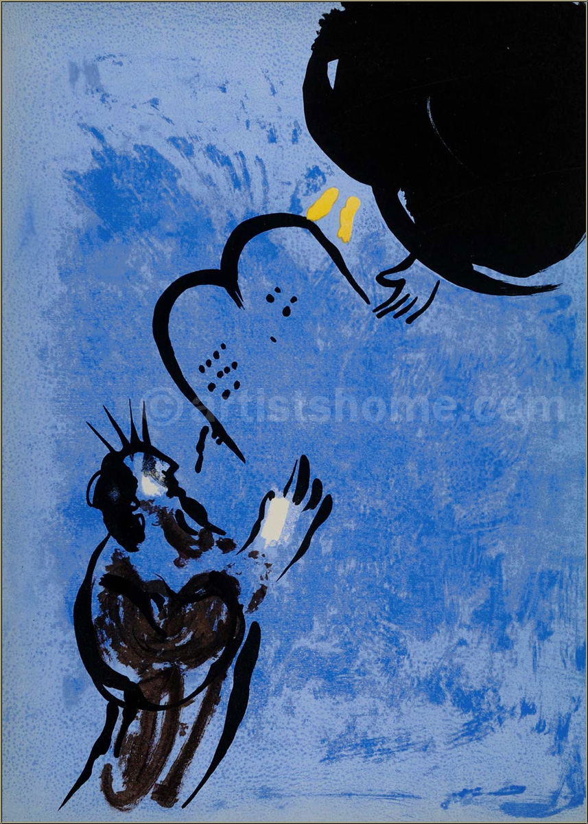 Marc Chagall: Moses Receiving the Tablets of Law, Original Lithograph for The Bible, 1956 | Genuine Prints
