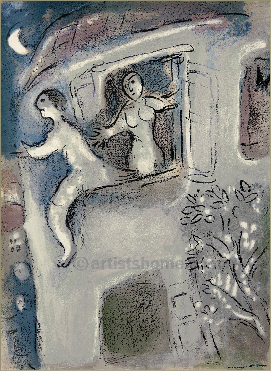 Marc Chagall: Original Lithograph Bible "David saved by Michal" 1960