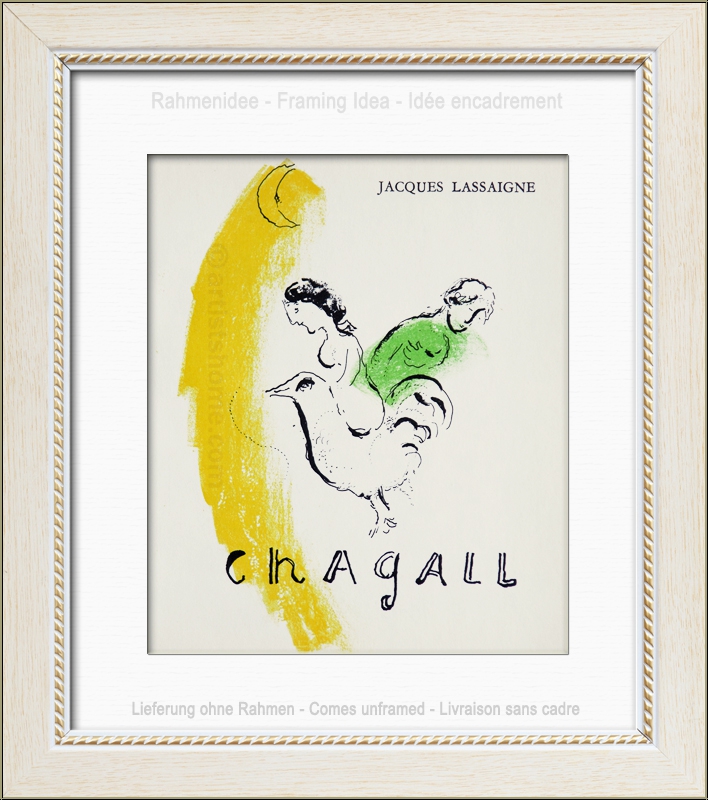 | | "Rooster With Crescent" (Le Coq au Croissant) | Technique: | Original lithograph in colors (Mourlot no. 193) This is N O T a mass-produced reprint (photomechanical reproduction) but the original lithograph from the first edition of the monograph "Chagall" by J. Lassaigne, exactly as referenced in Mourlots catalogue raisonné. Note: there are lots of reproduced plates from a later piracy reprint edition that are no original lithographs! | | Year: | 1957 | | Sizes: | 23 x 20 cm / 9" x 7.9" (sheet) | | Edition | Paper: | One of 6000 unsigned copies from the book edition on smooth velin paper. In addition, 90 pencil-signed and numbered copies on Arches wove paper with wide margins were published. | | Published by: | Maeght Editions, Paris | | Printed by: | Mourlot, Paris | | Documentation / References: | Mourlot, Fernand. Chagall Lithograph [II] 1957-1962, André Sauret, Monte-Carlo 1963, pages 20-29, no. 193 Your print is being delivered with an abstract from the aforementioned catalogue raisonné. In addition, you'll receive a proof of identity (without selling price) in case this print is intended as a gift. | | Condition: | Read more A very good copy from the archives. Rare, in this condition! Frame not included in delivery. | Customer Reviews: This item has not been rated, yet. Customer ratings may only be submitted by customers who have bought this item and are logged in. Your name will, of course, be displayed anonymized (e.g., "Tom H., United Kingdom").  *Applies to deliveries to Germany paid via PayPal. In case of payment by bank transfer, delivery will take 1-3 days longer from the day of your banker�s order. Delivery times for other countries and information for estimating the day of delivery can be found here |