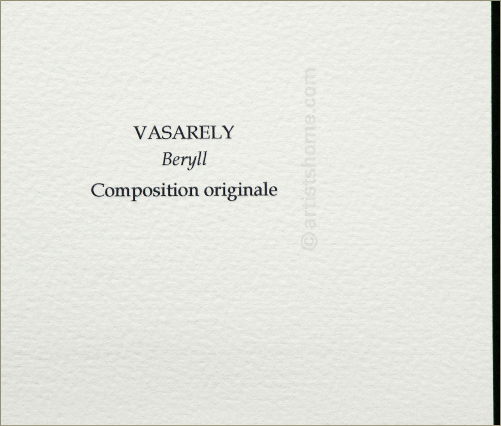 Edition | Paper: One of only 800 unsigned impressions on Arches wove paper. Text on the reverse: "Vasarely - Beryll - Composition originale"