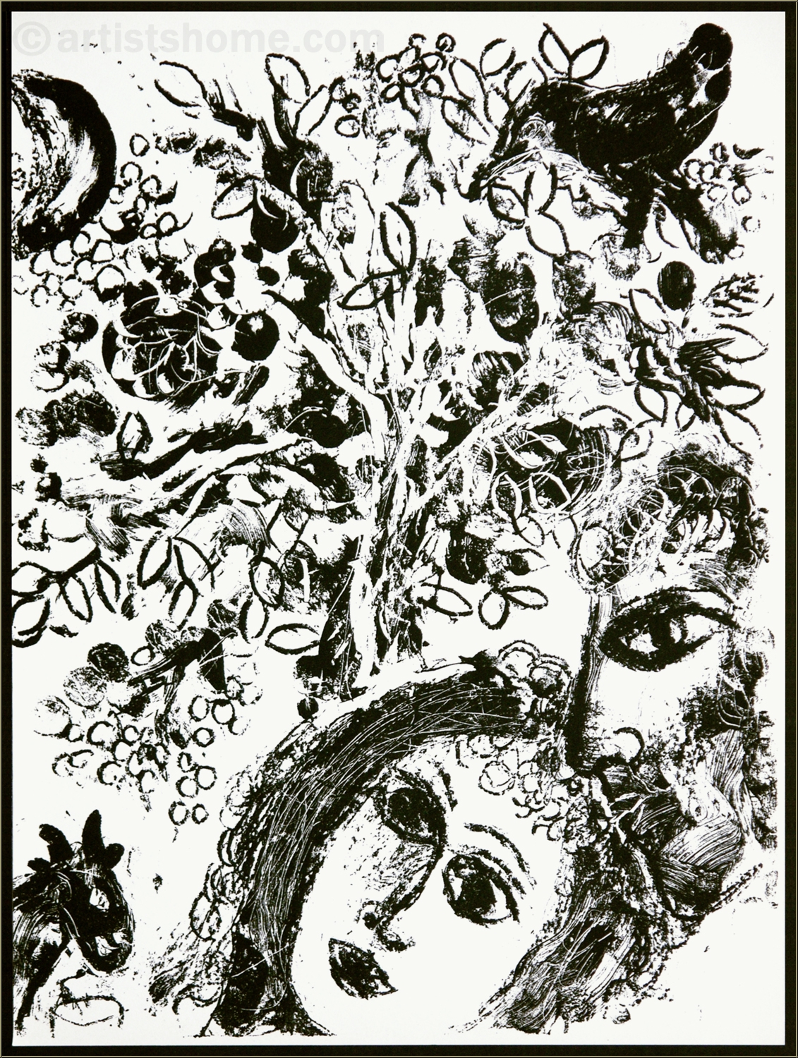 Marc Chagall: Couple Beside Tree 'Le couple devant l'arbre' 1960 - Original Lithographs | Genuine Prints