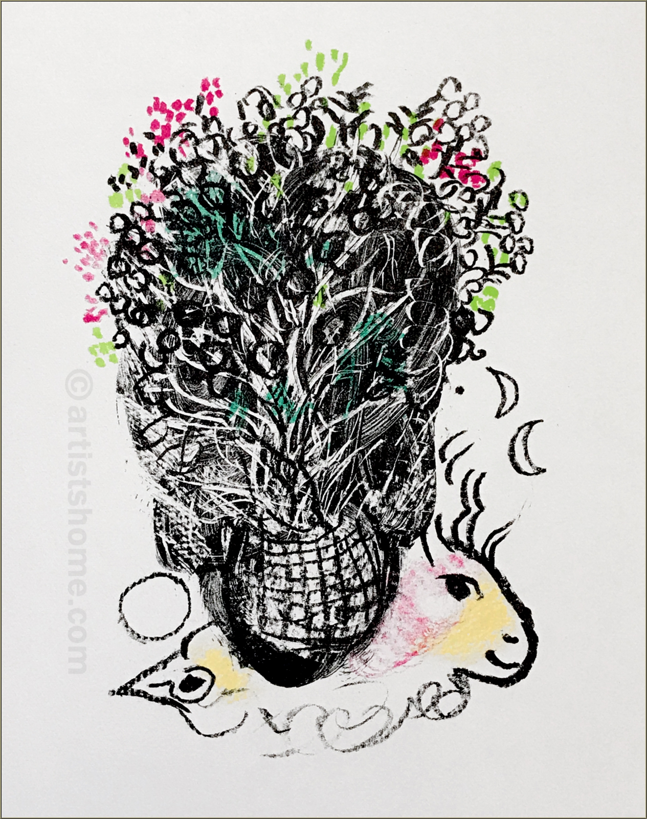 Remarks: Text on the reverse: "Marc Chagall - Bouquet pour Fernand - Lithographie originale"