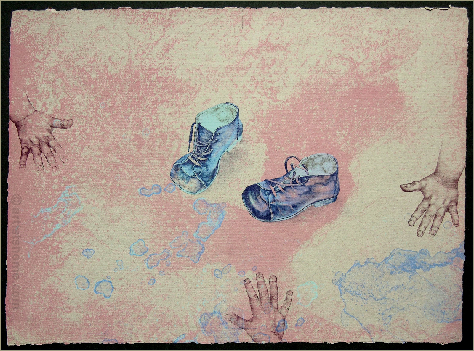 Reiner Schwarz: Child's shoes & hands, unique work of art, great gift idea for parents-to-be | Genuine Prints