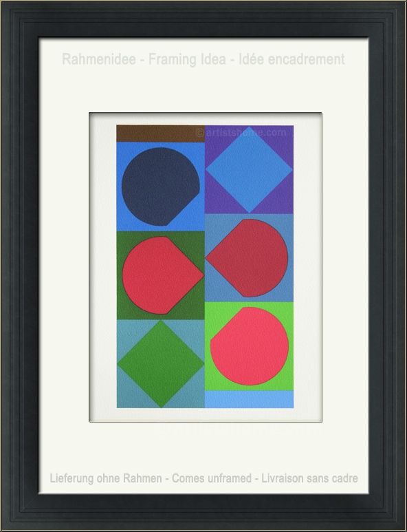 | | "Beryll" (Beryl) for Fernand Mourlot's renowned book "Souvenirs et portraits d'artistes" | Technique: | Original lithograph in colors, printed by Mourlot This is N O T a mass-produced mere art print (e.g. photo or grano lithograph from a later "Limited edition") but the original lithograph printed for the collector's de luxe edition of the a.m. portfolio. WARNING: There are currently very similar-looking prints sold on the internet, at small prices. These are unauthorized reprints (pirated copies) an NO original lithographs! | | Year: | 1972 | | Sizes: | 32,5 x 25 cm / 12 ¾" x 10" (sheet) | | Edition | Paper: | One of only 800 unsigned impressions on Arches wove paper. Text on the reverse: "Vasarely - Beryll - Composition originale" | | Published by: | Alain C. Mazo, Paris u. Léon Amiel, New York, 1972 | | Printed by: | Mourlot, Paris | | Documentation / References: | https://mourlot.com: "Livres de Fernand Mourlot" (in French language) Your print is being delivered with a certificate of identity (without selling price in case this print is intended as a present). | | Condition: | Read more A flawless, untouched impression from the archives! Frame not included in delivery. | Customer Reviews: This item has not been rated, yet. Customer ratings may only be submitted by customers who have bought this item and are logged in. Your name will, of course, be displayed anonymized (e.g., "Tom H., United Kingdom").  *Applies to deliveries to Germany paid via PayPal. In case of payment by bank transfer, delivery will take 1-3 days longer from the day of your banker�s order. Delivery times for other countries and information for estimating the day of delivery can be found here |